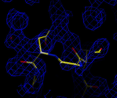After analysis of the geometry and fit to the experimental data electron density maps should be checked. Cross-validated, sigma-A weighted 2Fo-Fc and difference maps are calculated: