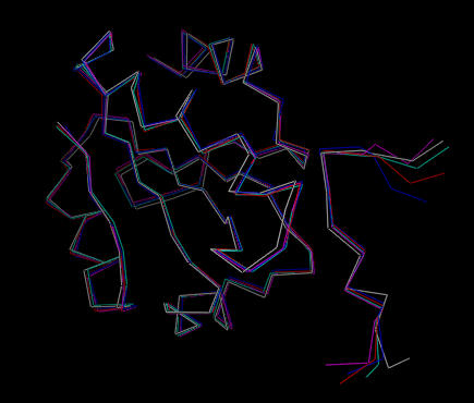 In this case five trial structures were generated. An alternative approach would have been to only generated accepted structures, in which case the script would have run until five accepted structures had been generated. The five structures are quite similar: