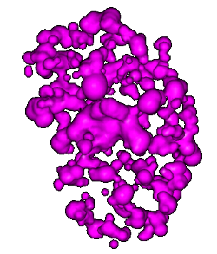 The plot below shows just the gap regions (lilac) with the protein removed. The largest one (in the middle of the picture) corresponds to the protein's binding site where the inhibitor binds and can be separately extracted and displayed (see Extracting and comparing gap regions).